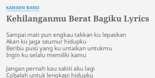 Kehilanganmu Berat Bagiku Lyrics By Kangen Band Sampai Mati Pun Engkau